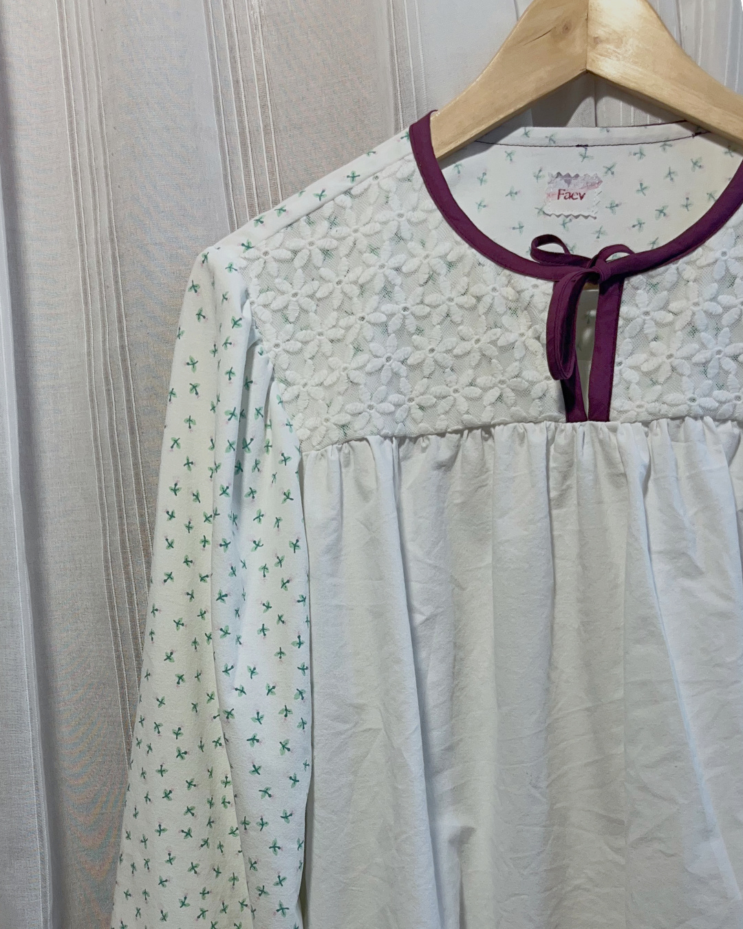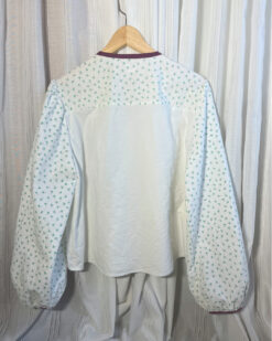Blouse met kant detail, in wit en bloemen print gemaakt van vintage katoenen textiel.